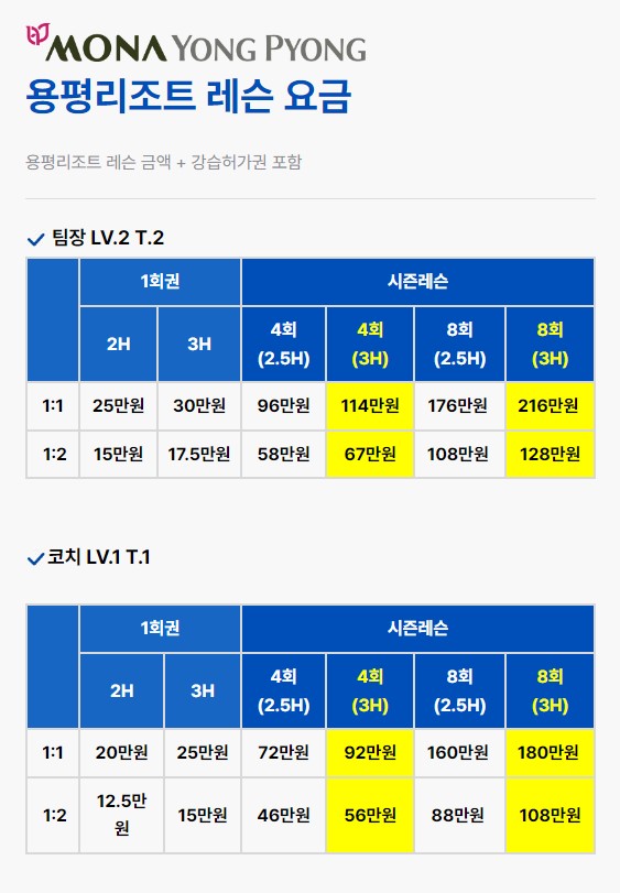 용평리조트 레슨 요금